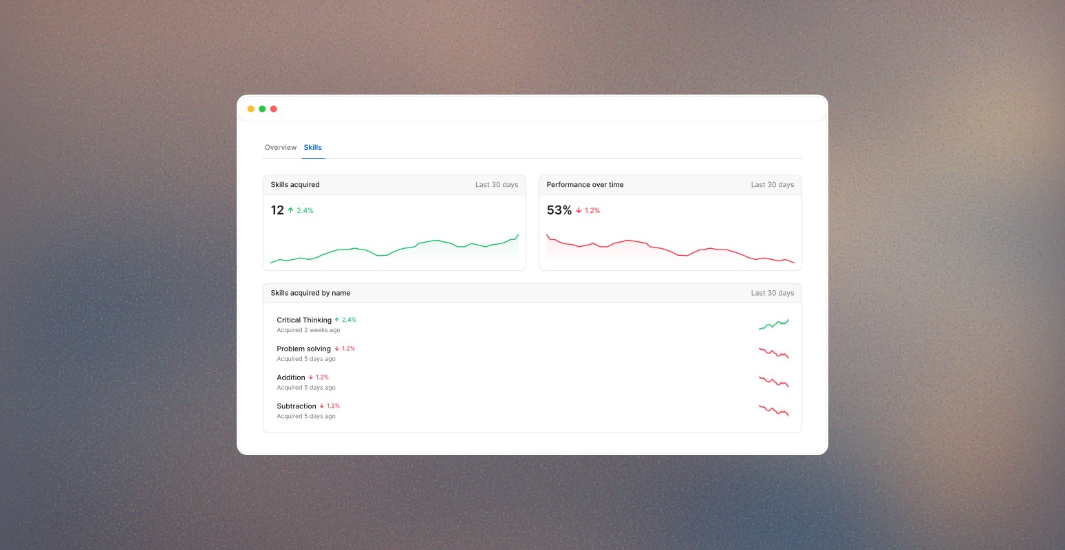 Tracked at the skill level, updated in real time.