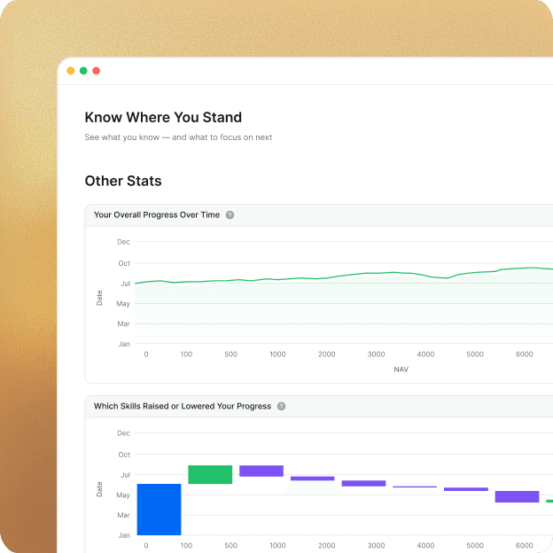 Genda gives you a real-time view of your understanding, guiding what to focus on next so every step leads to measurable progress.
