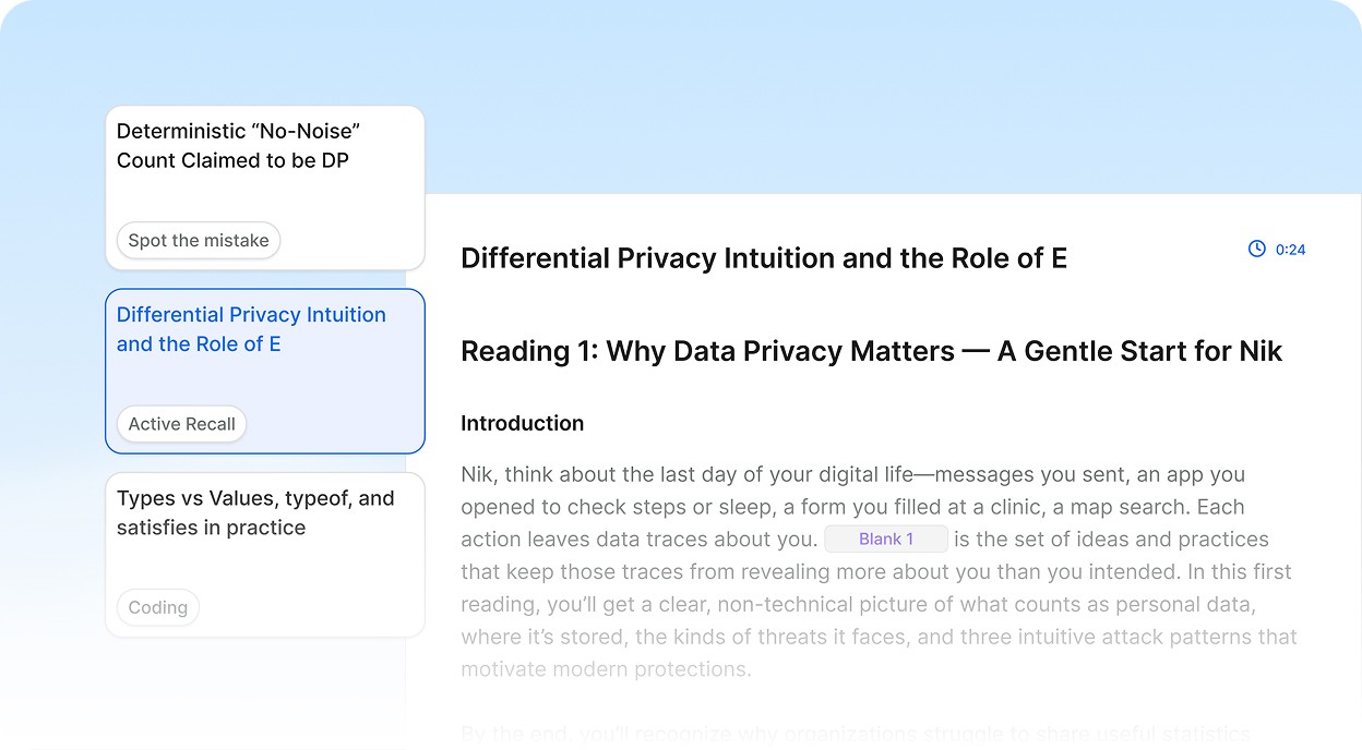 Reinforce what you learn with targeted recall, so key concepts stick and are ready when you need them.
